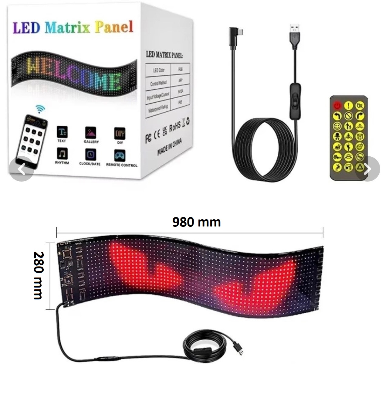 پنل ماتریکسی LED منعطف کد 04 (سایز 28 سانتیمتر در 98 سانتیمتر)